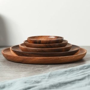 The MEL kit consists of 5 serving plates made of acacia wood with different diameters-each one designed for a different course, from appetizer to dessert or fruit at the close.